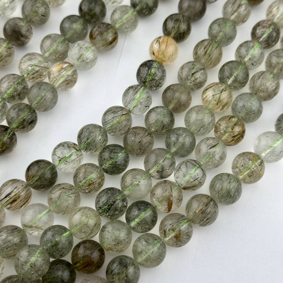 Рутиловый кварц(зеленый волосатик) размеры 6мм 8мм 10мм 12мм натуральный камень